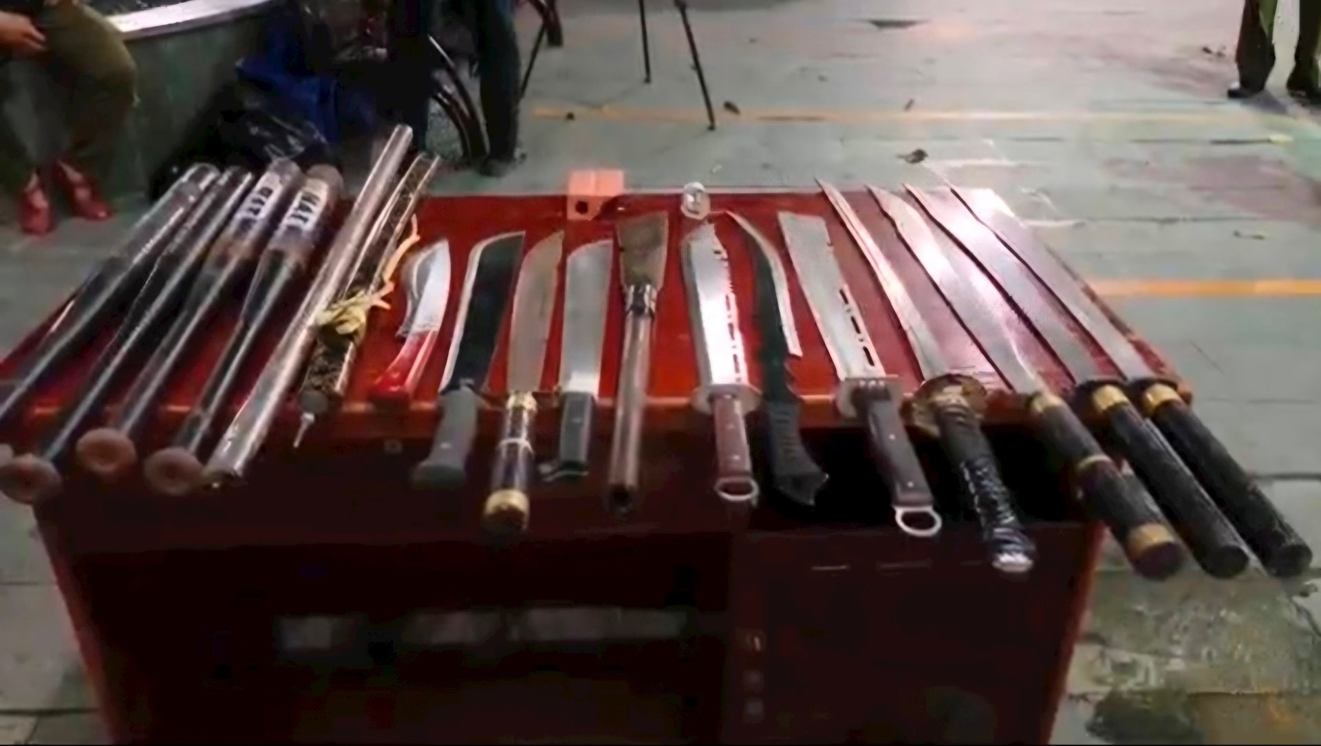 Dao rựa, mã tấu được các đối tượng dùng trong vụ hỗn chiến. |