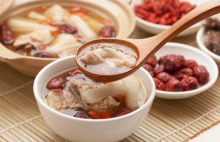 Sườn heo hầm củ mài, táo đỏ giàu protein và nhiều loại vi chất, có tác dụng bồi bổ âm thận, bổ khí dưỡng huyết. Ảnh: QQ News. |
