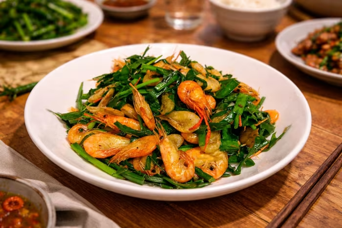 Hẹ xào tôm - làm ấm và bổ thận dương, tăng sinh lực