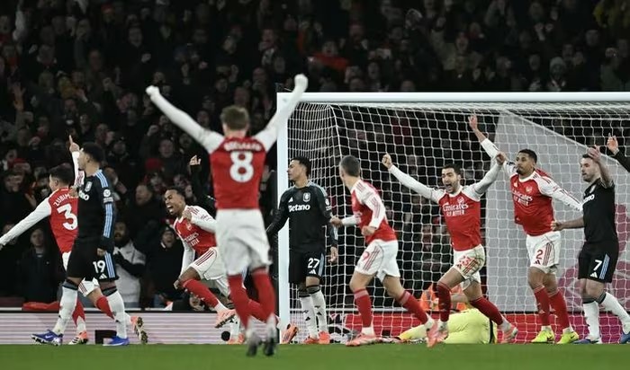 Aston Villa cũng có tình huống gây tranh cãi khi Amadou Onana ngã trong vòng cấm sau pha va chạm với William Saliba, song trọng tài Darren England chỉ cho đội khách hưởng phạt góc. Trận đấu nóng lên từ đây.