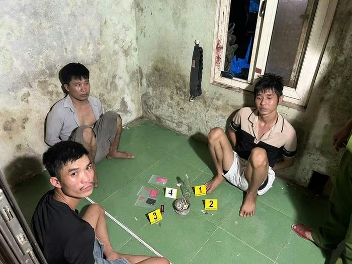 Tại phòng ngủ của Ngô Đình Phú (39 tuổi, trú thôn Áng Sơn), lực lượng chức năng bắt quả tang Phú cùng Lê Công Đức (31 tuổi, trú thôn Kim Nại) và Nguyễn Thành Nhân (35 tuổi, trú thôn Tây Cổ Hiền) đang tổ chức sử dụng trái phép chất ma túy.