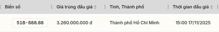 Sau 25 phút đấu giá chính thức và 10 vòng gia hạn, một tài khoản đã trả mức giá cao nhất 3,26 tỷ đồng, trở thành con số chốt cuối cùng của phiên đấu.
