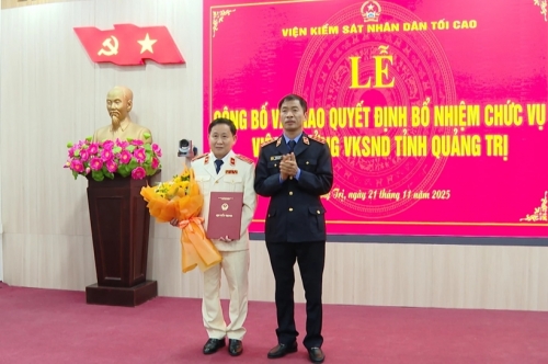 Chiều ngày 21/11 tại Quảng Trị, VKSND tối cao đã tổ chức Lễ công bố, trao quyết định về công tác cán bộ.
