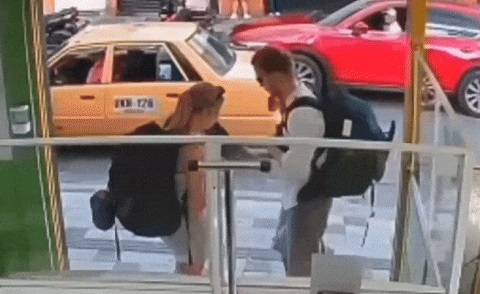 Trong khi cô gái chật vật đối phó kẻ cướp trên con phố ở Colombia, người đàn ông đi cùng co rúm lại vì sợ, thậm chí né ra xa, nấp sau bức tường.