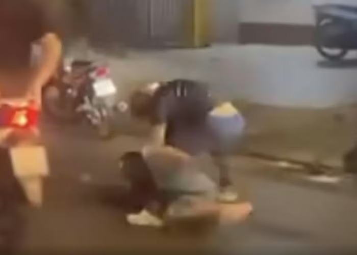 Hai người đàn ông vật lộn, đánh nhau giữa đường ở phường Chợ Quán