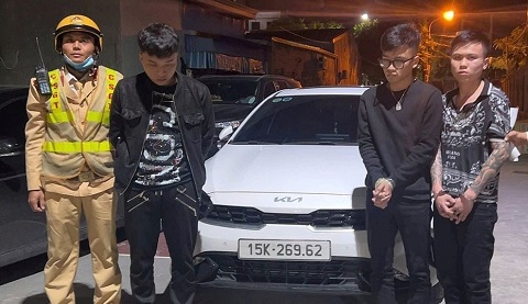 Sau khi đột nhập nhà dân trộm tiền và ô tô Toyota Yaris, Lê Văn Hoàng (20 tuổi, ở Quảng Trị) lái xe vừa lấy cắp đến quán nhậu đón bạn gái về nhà.