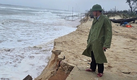 Do ảnh hưởng của đợt không khí lạnh và triều cường dâng cao đã xảy ra tình trạng nhiều khu vực bị sạt lở tại Quảng Trị.