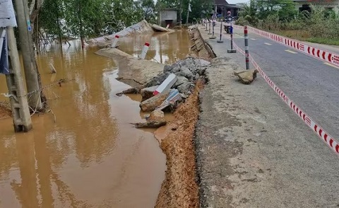 Do mưa lớn kéo dài nhiều ngày qua, trên địa bàn xã xuất hiện nhiều điểm sạt lở, sụt lún trên tuyến Tỉnh lộ 587 và một hộ gia đình ở khối 2.