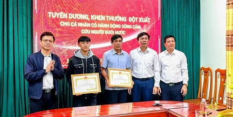 Khen thưởng hai cha con cứu vớt 5 người trong vụ lật thuyền trên sông Gianh