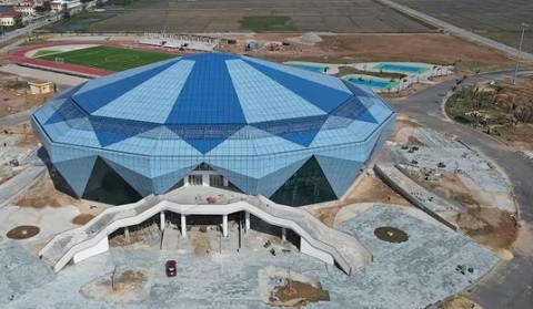 Trung tâm thể dục thể thao tỉnh Quảng Trị đang vào giai đoạn hoàn thiện, nổi bật là nhà thi đấu đa năng hình kim cương xanh, quy mô 2.500 chỗ ngồi.
