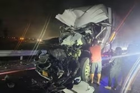 Vụ va chạm nghiêm trọng đến mức xe ô tô con bị biến dạng, phải dùng cần cẩu để kéo nó ra khỏi đường.