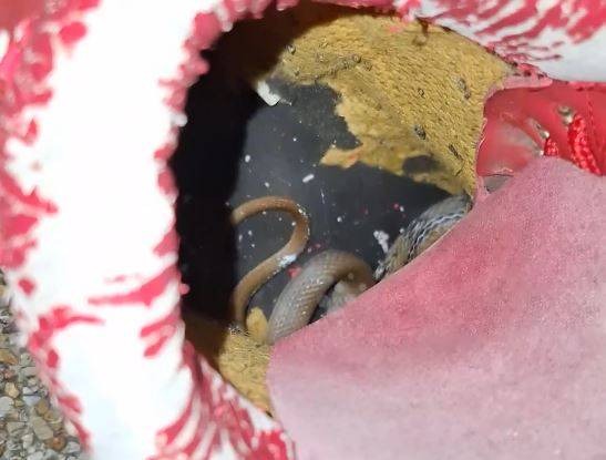 Đoạn clip ghi lại khoảnh khắc gây sốc khi người phụ nữ bất ngờ phát hiện một con rắn con cuộn tròn bên trong chiếc giày.