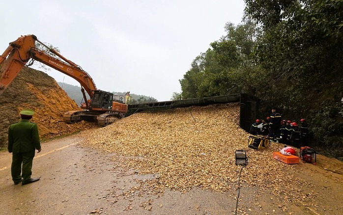 Xe tải chuyển hướng không đúng quy định dẫn tới va chạm với xe đầu kéo khiến xe đầu kéo lật, đè trúng ô tô con khiến 1 người tử vong