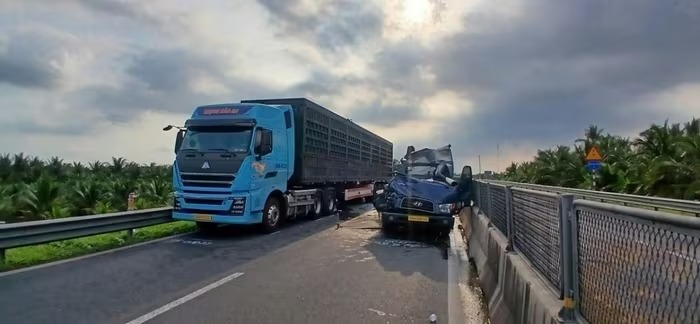 Ô tô tải đâm vào container làm một người tử vong tại Đồng Tháp