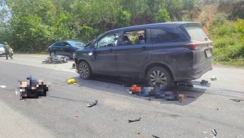 Chiếc ô tô 7 chỗ đang đi trên quốc lộ 1 đoạn qua huyện Bình Sơn, tỉnh Quảng Ngãi, thì bất ngờ đâm vào dải phân cách rồi nhào lộn nhiều vòng trước khi tiếp đất. Vụ tai nạn làm 2 người chết và 3 người bị thương nặng.
