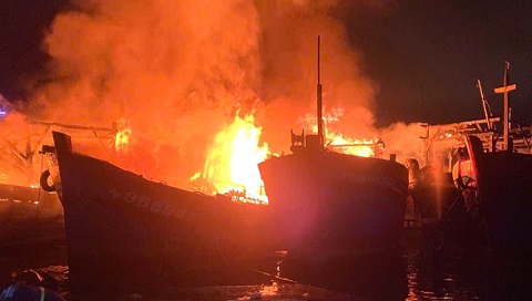 Cháy tại bến neo đậu sông Trà Bồng, 4 tàu cá bị thiệt hại nặng