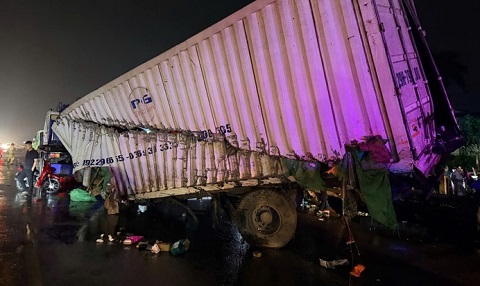 Xe tải chuyển hướng không đúng quy định dẫn tới va chạm với xe đầu kéo khiến xe đầu kéo lật, đè trúng ô tô con khiến 1 người tử vong