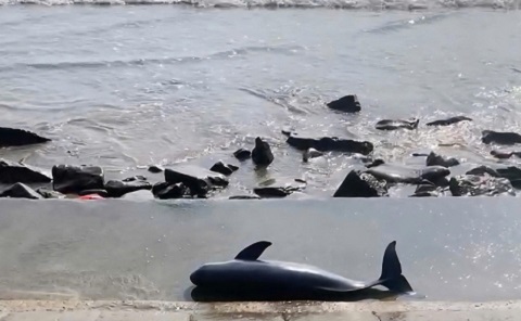 Phát hiện xác cá voi trôi dạt vào bờ biển ở Quảng Trị
