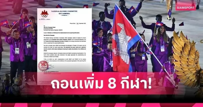 Theo thông tin mới nhất từ Siamsport, Campuchia đã chính thức tuyên bố rút bớt nội dung tham dự tại SEA Games lần thứ 33, diễn ra từ ngày 9 đến 20/11/2025 tại Thái Lan. Trước đó, Campuchia đã thông báo không tham dự môn bi-da và Muay Thái.