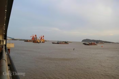 Khu vực đê chắn sóng và cảng nhập than đã thi công hoàn thành, chuẩn bị phục vụ cho hoạt động của Nhà máy nhiệt điện Quảng Trạch I. Ảnh: Thanh Tuấn |