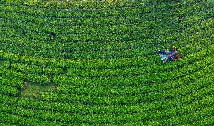Với thắng cảnh tuyệt đẹp do thiên nhiên ban tặng cùng khí hậu ôn hòa cộng với bàn tay chăm chỉ của người nông dân, hàng trăm đồi chè đều tăm tắp nhìn từ trên cao tạo nên một khung cảnh thi vị hiếm có. |