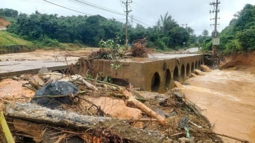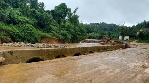 Do mặt cầu cao, các cửa thoát nước nhỏ bị rác, bùn đất chắn dòng chảy nên nước không thoát được dẫn đến ngập, xói lở ngầm tràn Ván Ri mỗi khi có mưa lớn xảy ra.