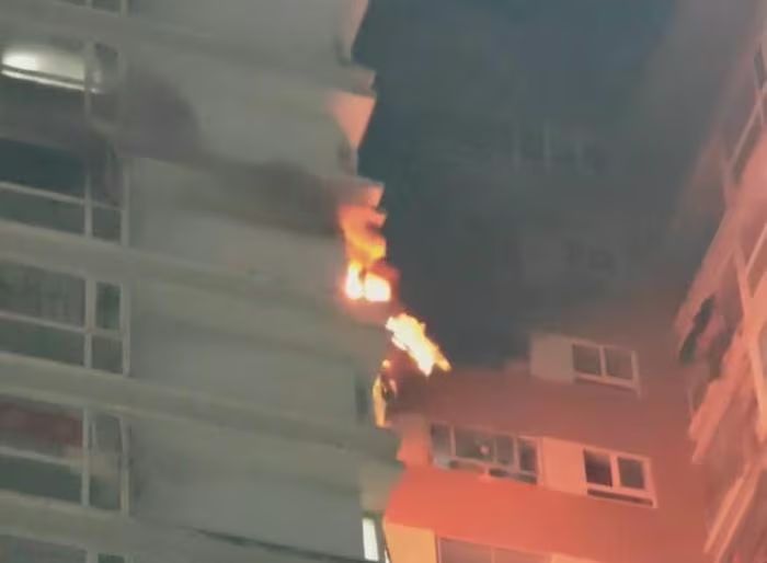Lửa bùng phát ở căn hộ tầng 16 của chung cư |