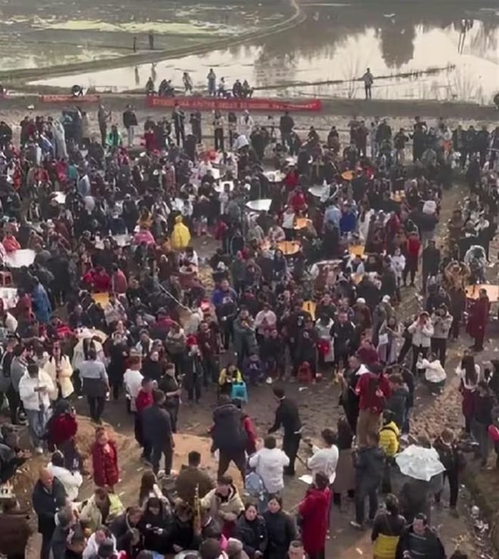 Quang cảnh bữa tiệc biến thành lễ hội hôm 12/1. Ảnh: NetEase. |