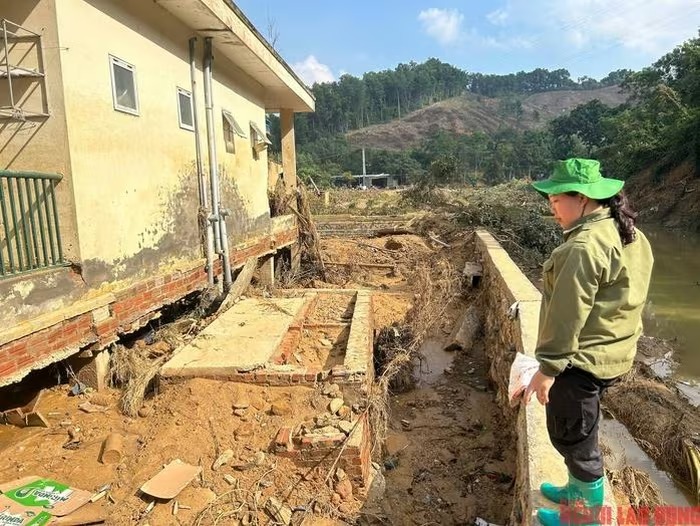 Ngày 8-10, nước lũ rút, cô giáo Lưu Thị Thu Thảo vội vàng đến điểm trường để kiểm tra, cảnh tượng trước mắt khiến cô không thể tin vào mắt mình, ngôi trường bị thiệt hại nặng nề do trận lũ quét
