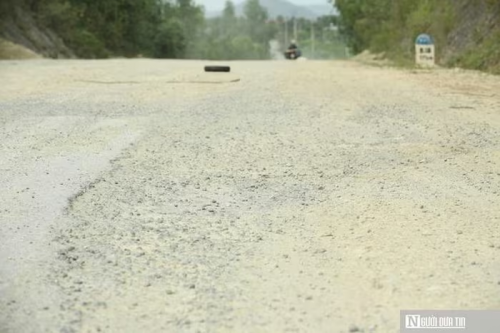 Theo ghi nhận của PV, kết cấu mặt đường bị phá vỡ, những mảng nhựa bong tróc kéo dài, trơ lại lớp đá lổm nhổm.