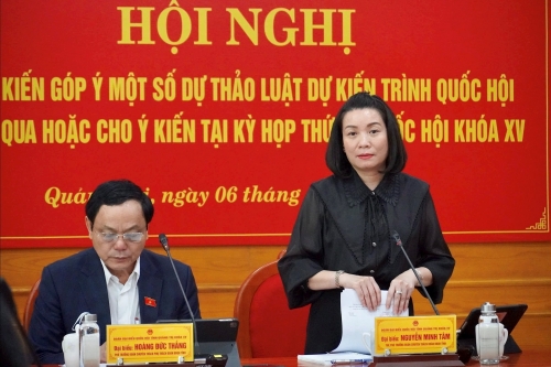 Phát biểu kết luận Hội nghị, Phó Trưởng đoàn chuyên trách Đoàn ĐBQH tỉnh Nguyễn Minh Tâm ghi nhận các ý kiến góp ý của đại diện các cơ quan, đơn vị. Các ý kiến đóng góp của đại biểu và cử tri sẽ được Đoàn ĐBQH tỉnh tổng hợp để chuyển đến cơ quan chủ trì soạn thảo xem xét và có ý kiến tại Kỳ họp thứ Mười, Quốc hội Khóa XV sắp tới.