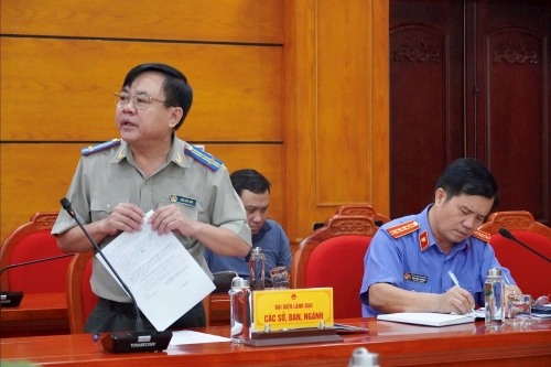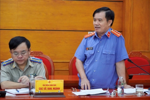 Đại diện Viện kiểm sát Nhân dân tỉnh Quảng Trị phát biểu tại Hội nghị. Ảnh: Khánh Trinh |