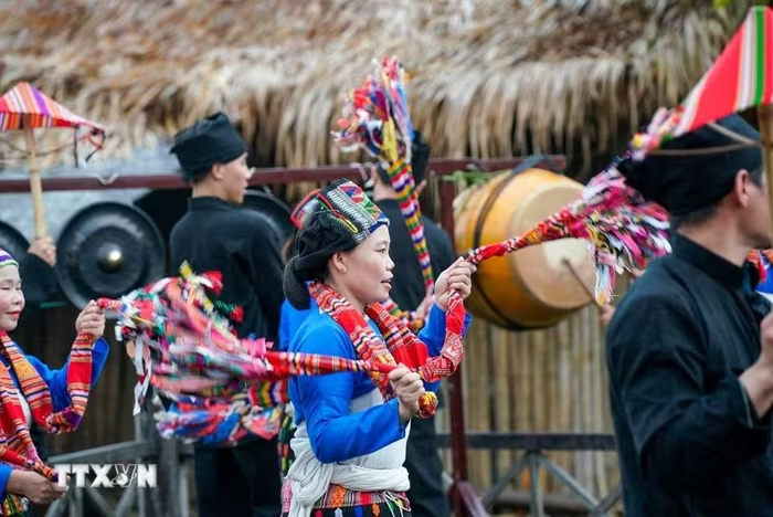 Sau phần nghi thức là phần hội với nhiều loại hình âm nhạc dân gian, truyền thống. (Ảnh: Khánh Hòa/TTXVN) |