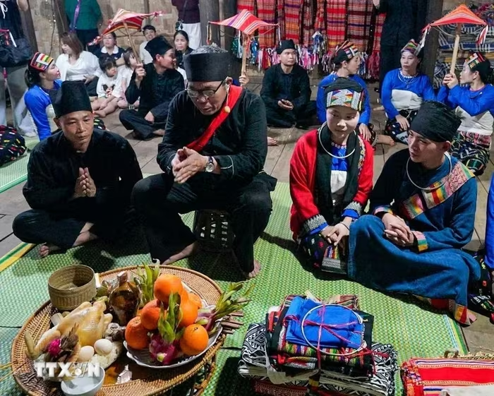 Ông Mơ thực hiện nghi thức của lễ xin cưới lần hai. (Ảnh: Khánh Hòa/TTXVN) |