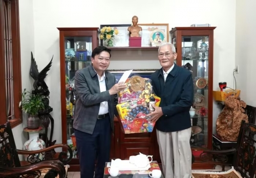 Đồng chí Lê Hồng Vinh, Chủ tịch UBND tỉnh thăm, chúc Tết đồng chí Trần Công Thuật, nguyên Chủ tịch UBND tỉnh – Ảnh: T.Đ |