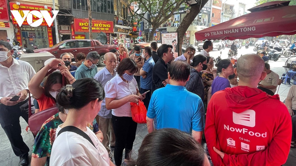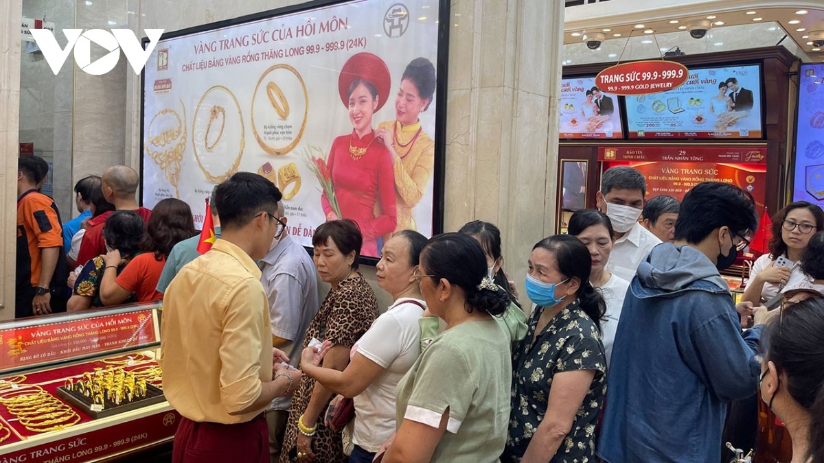 Người dân đổ xô đi mua vàng dù giá vàng trong nước đắt hơn thế giới hàng chục triệu đồng/lượng. |
