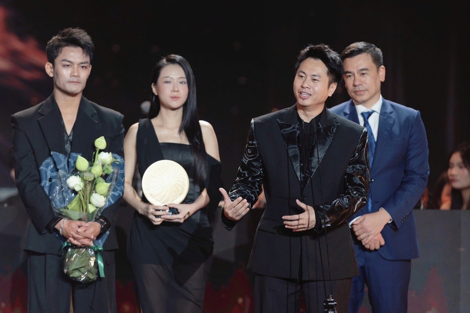Dương Cầm và NSX Quỳnh Nguyễn trên sân khấu nhận giải. Giấc mơ Chí Phèo trở thành điểm sáng của sân khấu nhạc kịch trong năm 2025. |