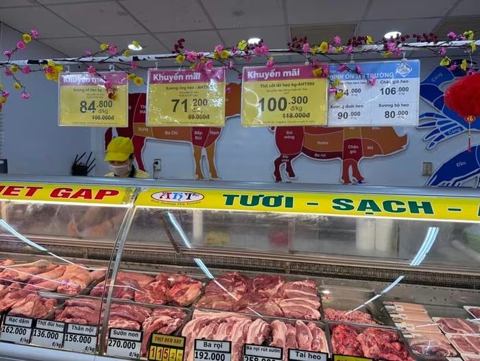 Trong bối cảnh đó, các hệ thống bán lẻ hiện đại trở thành lựa chọn của nhiều gia đình. Tại siêu thị Co.opmart ở phường Thạnh Mỹ Tây, nhiều mặt hàng thịt heo đang được giảm giá sâu. Xương cố heo giảm từ 106.000 đồng xuống còn 84.500 đồng/kg, xương ống từ 89.000 đồng còn 71.200 đồng/kg, cốt lết còn 100.300 đồng/kg, chân giò 90.000 đồng/kg, dựng heo 86.700 đồng/kg, thịt heo xay 115.200 đồng/kg.