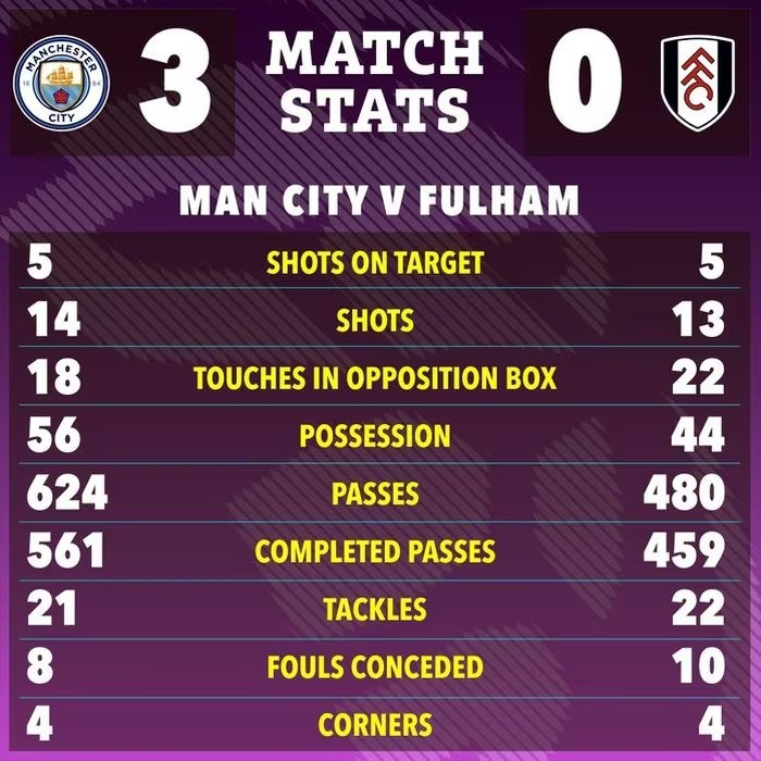 Man City vừa dễ dàng hạ gục Fulham 3-0 nhờ các pha lập công của Antoine Semenyo, Nico O'Reilly và Erling Haaland.