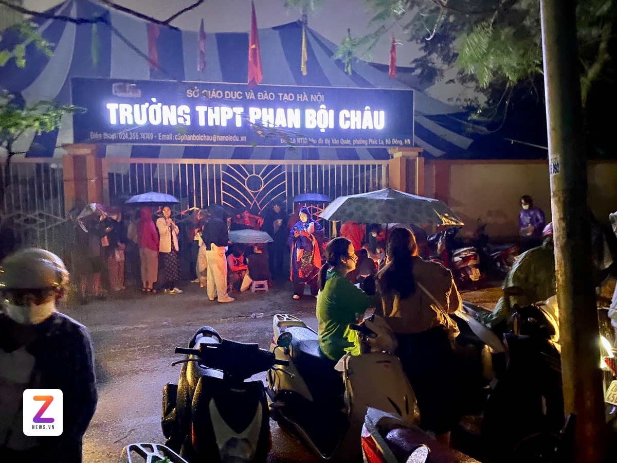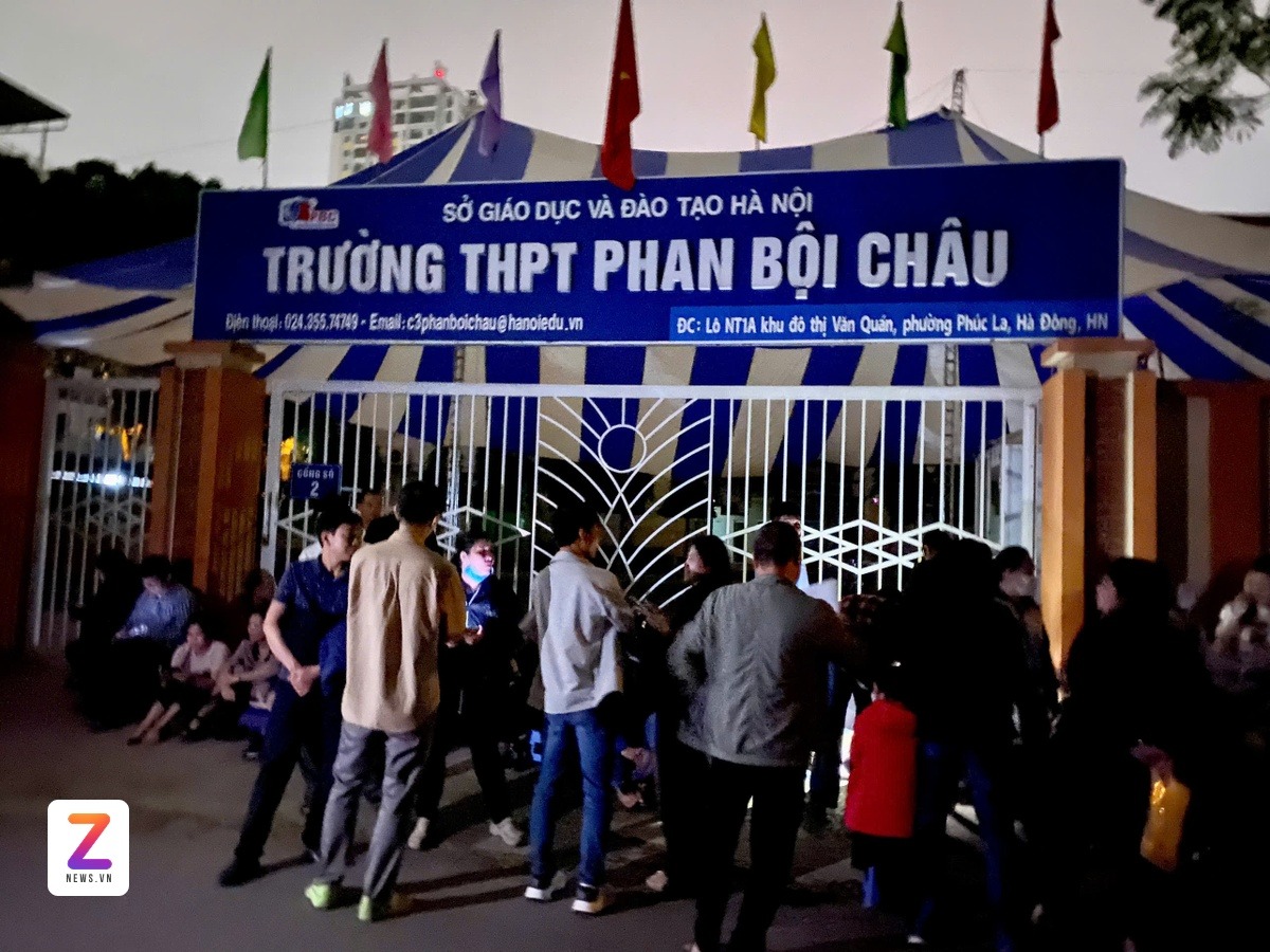 23h ngày 2/3, anh Trần Tùng (nhân vật đã được đổi tên, phường Thanh Xuân, Hà Nội) đã lỉnh kỉnh hồ sơ, ghế nhựa, đồ ăn nhẹ trực chờ trước cổng trường THPT Phan Bội Châu (Khu đô thị Văn Quán, phường Hà Đông, Hà Nội).