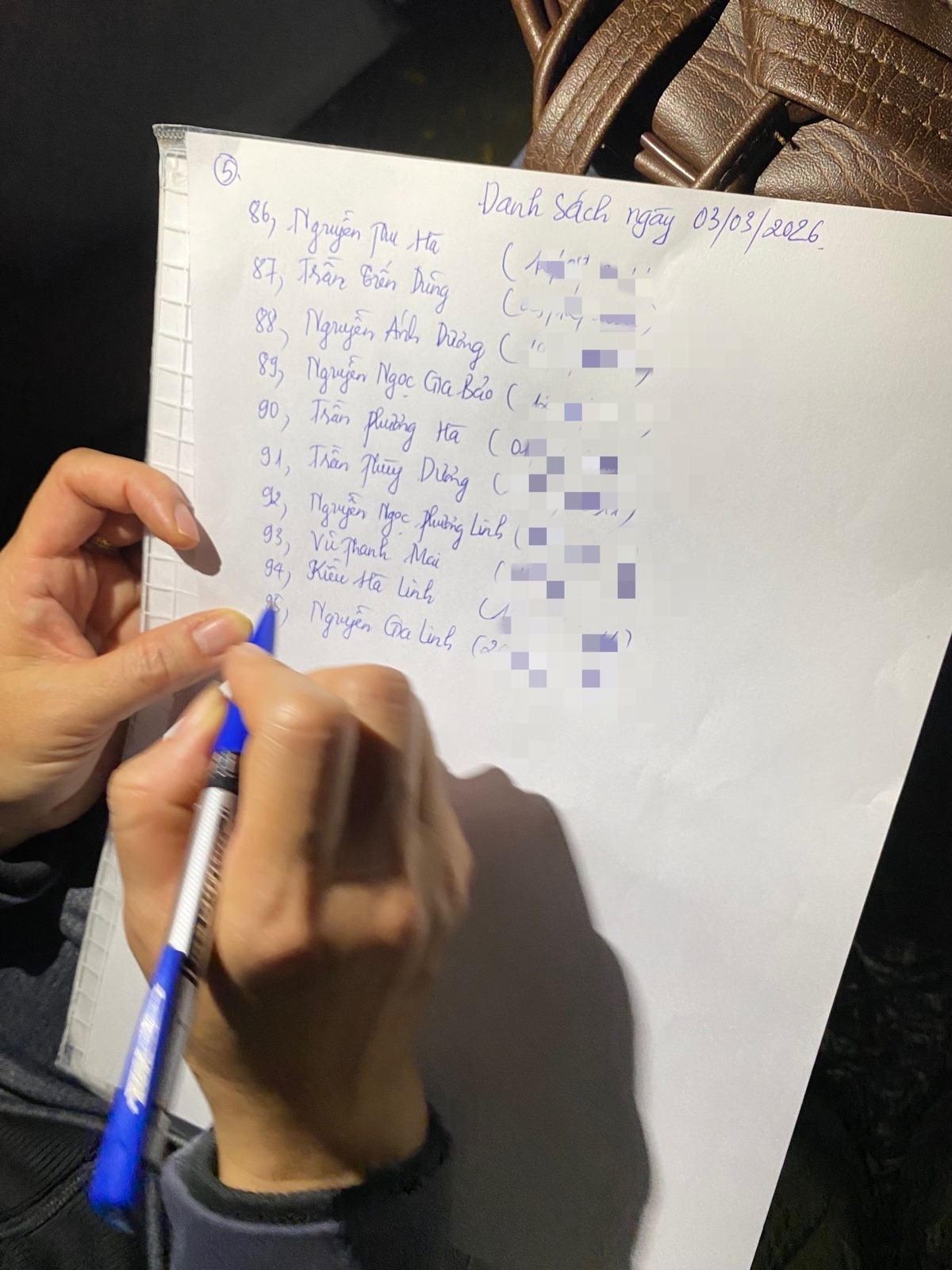 Suốt đêm trắng, anh Tùng ngồi bó gối trên chiếc ghế mang theo, không dám chợp mắt lấy một giây. Dù đã ghi danh sách tự phát ở số thứ tự đầu tiên, anh vẫn kiên quyết bám trụ ở cổng trường vì chưa nhận được số phiếu chính thức từ nhà trường và phòng những tình huống bất ngờ khác.