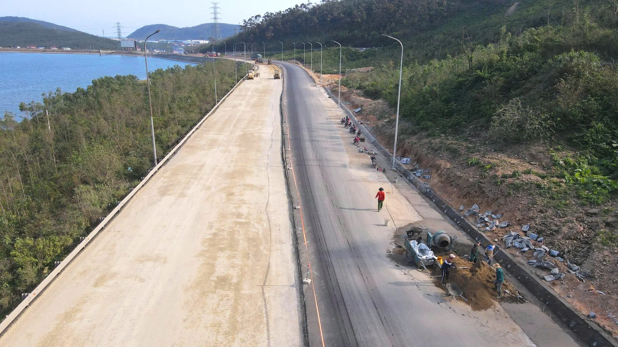 Cầu, đường ở phía cửa hầm đang được gấp rút thi công hoàn thiện |