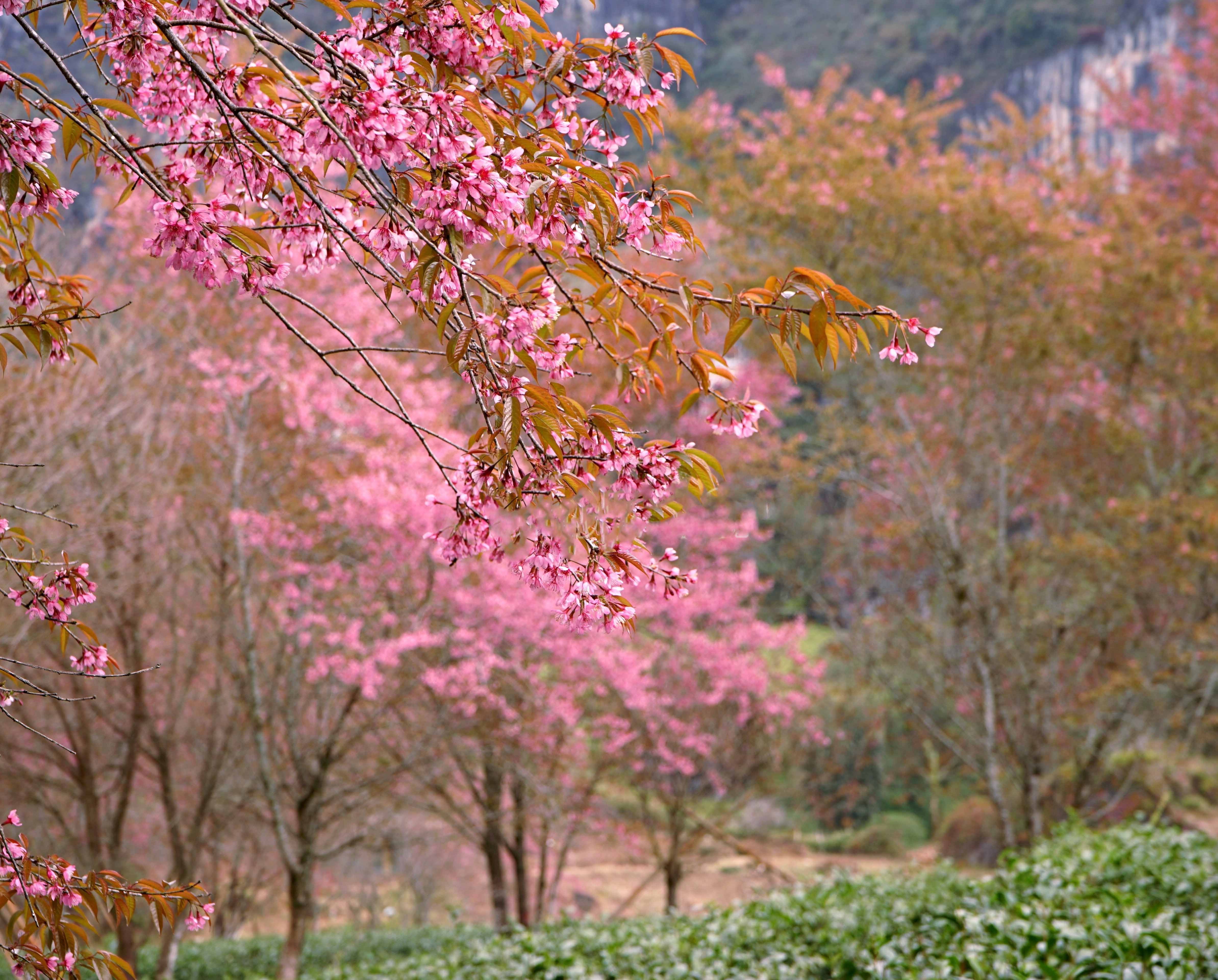 Do điều kiện khí hậu và thổ nhưỡng phù hợp nên anh đào được trồng ở khắp mọi nơi của Sa Pa, tạo cảnh quan vô cùng lãng mạn, trong đó, đồi chè Ô Long (khu vực Ô Quý Hồ) là một trong những địa điểm ngắm hoa anh đào đẹp nhất. |
