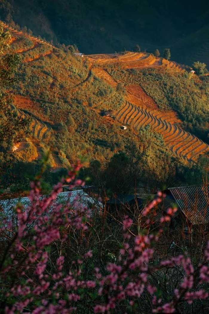 Không chỉ có hoa đào, Xím Vàng còn cuốn hút bởi vẻ đẹp nguyên sơ của thiên nhiên. Những buổi sớm, sương giăng bảng lảng trên các sườn núi, ruộng bậc thang hiện ra mờ ảo trong làn mây mỏng. Khi nắng lên, cả không gian bừng sáng, sắc hồng của đào hòa cùng sắc xanh của rừng, sắc vàng của nắng, tạo nên khung cảnh vừa hùng vĩ vừa thơ mộng. |