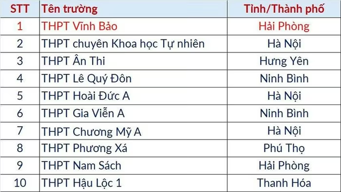 Top 10 của đợt 2 là các thí sinh đến từ các trường trung học phổ thông sau: