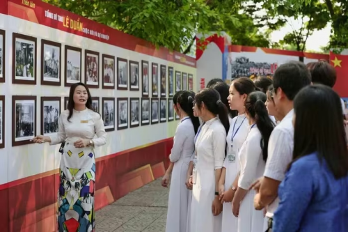 Triển lãm giới thiệu đến công chúng, thầy, cô giáo và học sinh 100 hình ảnh, tư liệu lịch sử quý giá về cuộc đời, sự nghiệp cách mạng của Tổng Bí thư Lê Duẩn.
