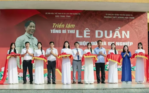 Ngày 22/4, Bảo tàng tỉnh Quảng Trị phối hợp Trường THPT Hoàng Hoa Thám (xã Lệ Ninh) tổ chức triển lãm chuyên đề “Tổng Bí thư Lê Duẩn - Cuộc đời và sự nghiệp”.