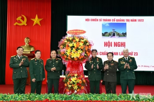 Bộ CHQS tỉnh Quảng Trị tặng hoa chúc mừng Ban chấp hành Hội chiến sĩ Thành cổ Quảng Trị năm 1972. |