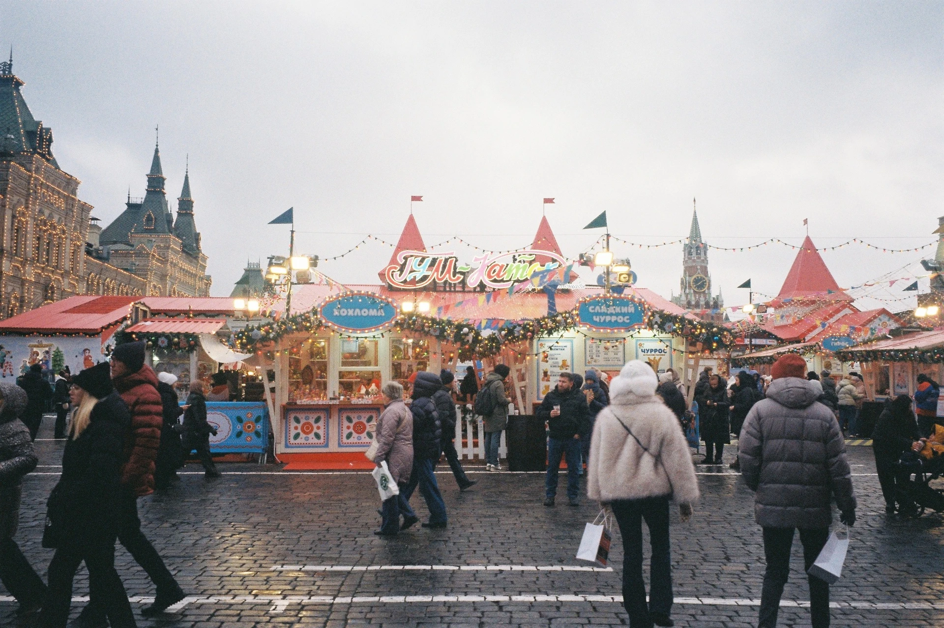 Chợ Giáng sinh ở Quảng trường Đỏ lấp lánh ánh đèn và rực rỡ sắc màu như thế giới cổ tích. |