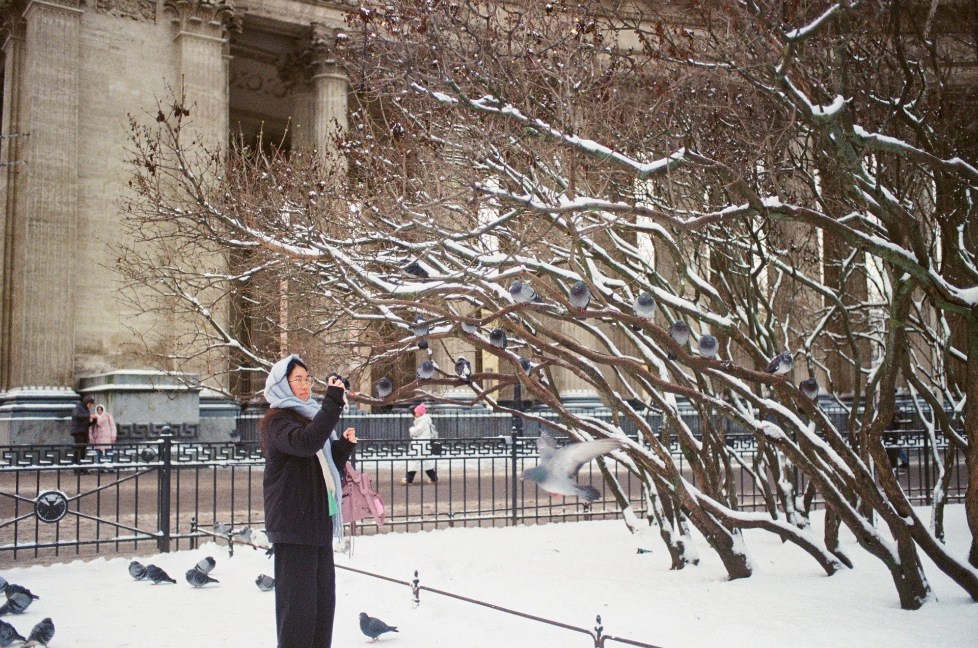 Khoảng sân phía trước thánh đường Kazan, Saint Petersburg ngập tràn chim bồ câu. |